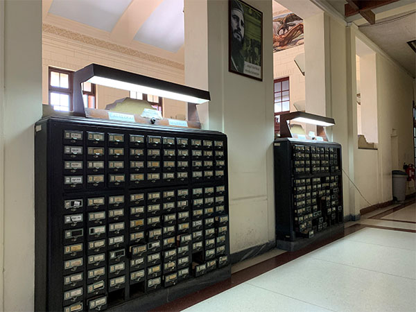 まずハバナ大学の図書館は、スペイン語コースを受けている生徒も利用可能であった。ジャンルごとに分けられた箱に入っている図書カードのなかから読みたい本のカードを出し、受け付けで持っていてもらうというスタイルで、図書館内でのみ閲覧可能である。政治などといったジャンルは設けられていなかった。また、教育や歴史などの箱のカードを見たが、書籍は1959年の革命前に書かれたものなど古い資料が非常に多かったため、研究の参考になりそうな資料はあまりなかった。雑誌などの資料は、後述する民間書店にも置かれているものが多かった。
