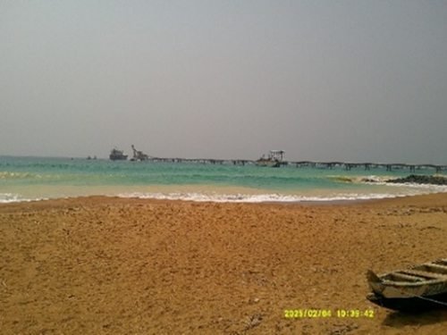 SNPTの精製施設は広大で全てコンクリートの壁によって仕切られており許可なく中に入る事は出来ない。海岸に面するように施設が存在していた。SNPTに近づく途中で単線の貨物線路が確認できた。線路は住民の家の傍を通りながら精製施設の中に伸びている。実際に鉱石を積載した貨物列車が走っていた。更に施設から線路が海に向かって伸びて貨物が走れるようになっており、その先には船への積み込み桟橋があった。