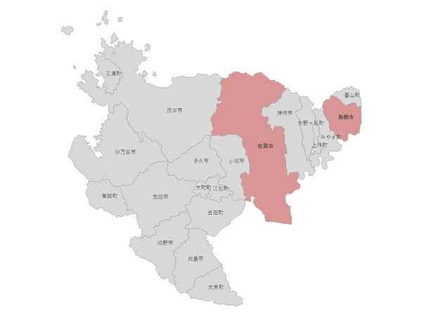 佐賀県地図、https://power-point-design.com/ppt-design/saga-for-powerpoint/より一部調査者加工