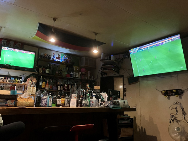 聞き取りに協力してくれたサポーターと共に佐賀市内にあるスポーツバーを訪問し、サガン鳥栖のアウェーの試合を観戦した。スポーツバーで展開される日常的な会話や行動を通じて、サポーターへの更なる聞き取り、参与観察を行った。