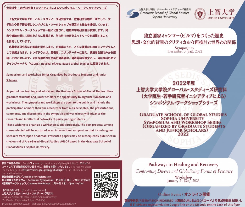 Symposium and Workshop Series 2022 Graduate School of Global Studies, Sophia University will be held online.