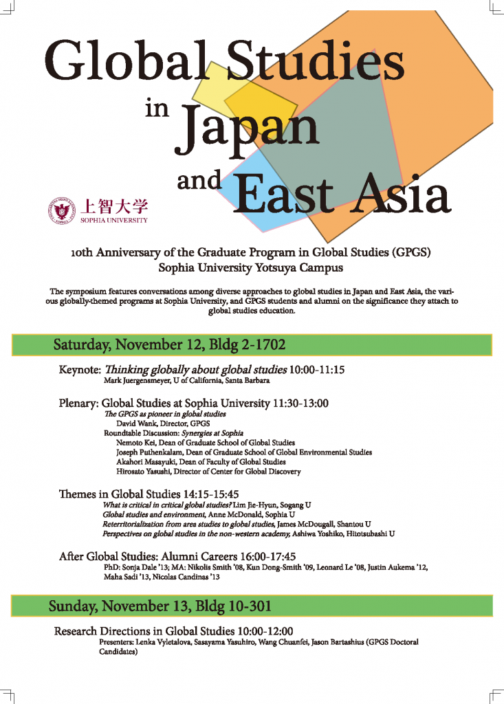 2020.09.02ソフィアシンポジウム:“Global Studies in Japan and East Asia”研究科主催イベント