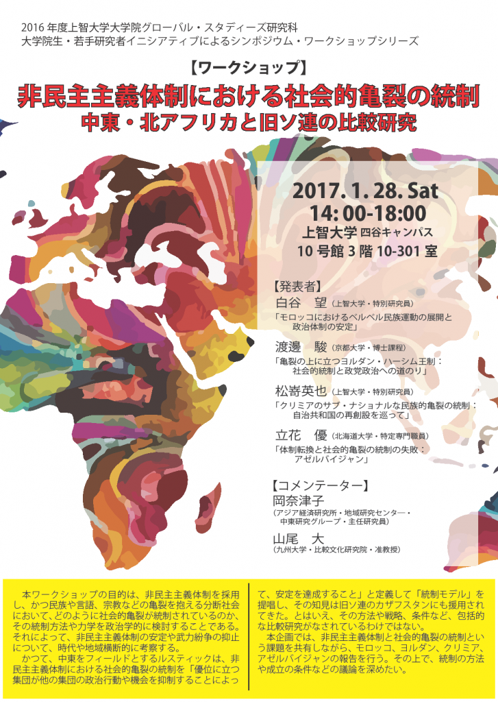 2020.09.02ワークショップ:「非民主主義体制における社会的亀裂の統制 中東・北アフリカと旧ソ連の比較研究」研究科主催イベント