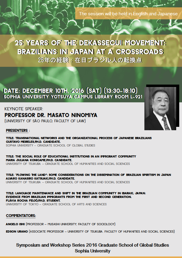 2020.09.02シンポジウム:“25 Years of the Dekassegui Movement: Brazilians in Japan at a Crossroads(25年の経験:在日ブラジル人の転換点)”研究科主催イベント