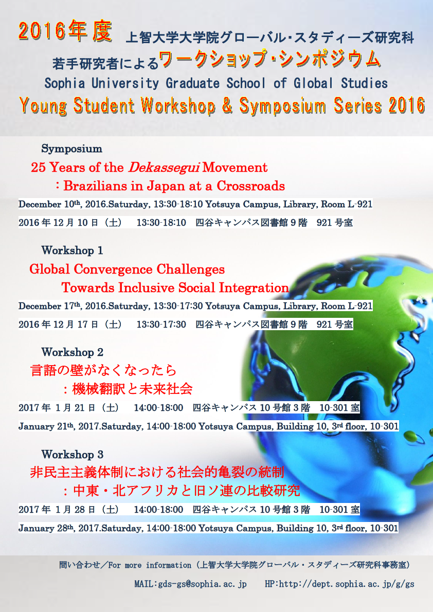 2020.09.022016年度大学院生・若手研究者イニシアティブによるシンポジウム・ワークショップシリーズのお知らせ研究科主催イベント