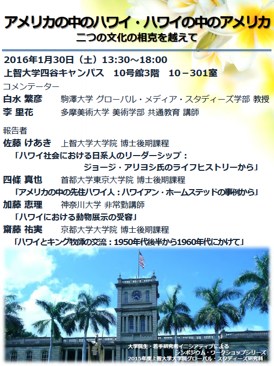 2020.09.02ワークショップ:「アメリカの中のハワイ・ハワイの中のアメリカ:二つの文化の相克を越えて」研究科主催イベント
