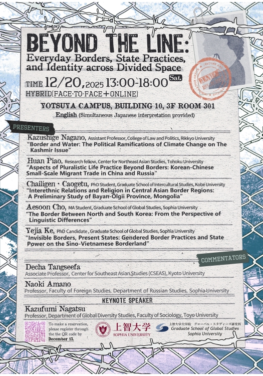 【要予約】12月20日 (土) シンポジウム “Beyond the Line: Everyday Borders, State Practices, and Identity across Divided Space”